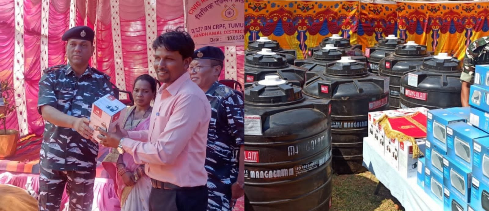 ବାଲିଗୁଡା,୧୦/୦୩(ପିପିଟି): କନ୍ଧମାଳ ଜିଲ୍ଲା ବାଲିଗୁଡା ଉପଖଣ୍ଡ ଅନ୍ତର୍ଗତ ତୁମୁଡିବନ୍ଧ ବ୍ଲକ ଭାଲିଆପାଣି ପଞ୍ଚାୟତରେ ଶାନ୍ତି ଏବଂ ନିରାପତ୍ତା ବଜାୟ ରଖିବା ସହ ଗ୍ରାମାଞ୍ଚଳ ବାସୀଙ୍କ ସହ ସୁସମ୍ପର୍କ ରଖିବା ପାଇଁ ମାନବିକ ସିଭିକ୍ ଆକ୍ସନ୍ ଗୃହ ମନ୍ତ୍ରଣାଳୟର ଆର୍ଥିକ ସହାୟତା ଯୋଜନା ଅଧୀନରେ ପରିଚାଳିତ ହୋଇ ୧୨୭ ବାଟାଲିୟନ ସିଆରପିଏଫ ତରଫରୁ ଏକ ଜନ ସମ୍ପର୍କ ଶିବିର ଅନୁଷ୍ଠିତ ହୋଇଯାଇଛି । ପୁଲିସ ଇନ୍ସପେକ୍ଟର ଜେନେରାଲ୍ ଓଡିଶା ସେକ୍ଟରର ଏସ୍. କେ. ମହାନ୍ତି, ୧୨୭ ବାଟାଲିୟନ କମାଣ୍ଡାଣ୍ଟ ଆନନ୍ଦ ଝା ଙ୍କ ମାର୍ଗ ଦର୍ଶନ ଅନୁସାରେ ୧୨୭ ବାଟାଲିୟନର ଦ୍ଵିତୀୟ କମାଣ୍ଡ ଆର.ଏଲ.ଫିମେଟ୍ ଓ ମଉଲୀ ମୋହନ କୁମାର ଦ୍ୱିତୀୟ କମାଣ୍ଡ (ପରିଚାଳନା) ଏବଂ ସିଆରପିଏଫ୍ ର ବରିଷ୍ଠ ଅଧିକାରୀଙ୍କ ଉପସ୍ଥିତିରେ ଉକ୍ତ ପଞ୍ଚାୟତର ୧୮୮ ପରିବାରଙ୍କୁ ଏକ ରଙ୍ଗୀନ ଇଭେଣ୍ଟରେ ସୋଲାର ଲ୍ୟାମ୍ପ, ରେଡିଓ ସେଟ୍, ୱାଟର ଷ୍ଟୋରେଜ୍ ଟ୍ୟାଙ୍କ ବଣ୍ଟନ କରାଯିବା ସହ ଏକ ମାଗଣା ସ୍ୱାସ୍ଥ୍ୟ ପରୀକ୍ଷା ଶିବିରରେ ମଧ୍ୟ ଆୟୋଜନ କରାଯାଇଥିଲା, ଯେଉଁଥିରେ କି ପଞ୍ଚାୟତ ବାସୀଙ୍କ ସ୍ୱାସ୍ଥ୍ୟ ପରୀକ୍ଷା ଏବଂ ମାଗଣା ଔଷଧ ଅଭାବୀ ଏବଂ ଗରିବ ଲୋକଙ୍କୁ ବଣ୍ଟନ କରାଯାଇଥିଲା । ଏହି କାର୍ଯ୍ୟକ୍ରମରେ ୧୨୭ ବାଟାଲିୟନର ବିଜୟ ପ୍ରସାଦ ଚୋବେ,ଫାର୍ମାସିଷ୍ଟ ବି.କେ.ପଟ୍ଟନାୟକ ତଥା କମ୍ପାନୀ କମାଣ୍ଡର ବାଟାଲିୟନ,ସରପଞ୍ଚ ପ୍ରିୟଙ୍କା ପାତ୍ର ଏବଂ ଅଞ୍ଚଳର ଅନ୍ୟ ବିଶିଷ୍ଟ ବ୍ୟକ୍ତିମାନେ ମଧ୍ୟ ଉପସ୍ଥିତ ଥିଲେ । ୧୨୭ ବାଟାଲିୟନର ଦ୍ୱିତୀୟ କମାଣ୍ଡ ଆର୍.ଏଲ୍.ଫିମେଟ ନିଜ ବକ୍ତବ୍ୟରେ ଏହି ଅଞ୍ଚଳରେ ଶାନ୍ତି ଏବଂ ନିରାପତ୍ତା ବଜାୟ ରଖିବା ତଥା ମାଓବାଦୀଙ୍କ ନିଷ୍ଠୁର କର୍ଯ୍ୟକୁ ରୋକିବା ପାଇଁ କନ୍ଧମାଳ ଜିଲ୍ଲାରେ ନିୟୋଜିତ ସିଆରପିଏଫ କମ୍ପାନୀ ପ୍ରତିବଦ୍ଧତାକୁ ଦୋହରାଇବା ସହ ସମଗ୍ର କନ୍ଧମାଳ ଜିଲ୍ଲାର ଅନ୍ୟାନ୍ୟ ଅଞ୍ଚଳରେ ମଧ୍ୟ ଏଭଳି କାର୍ଯ୍ୟକ୍ରମ ଆଗାମୀ ଦିନରେ ଆୟୋଜନ କରାଯିବ ବୋଲି ପ୍ରକାଶ କରିଛନ୍ତି ।