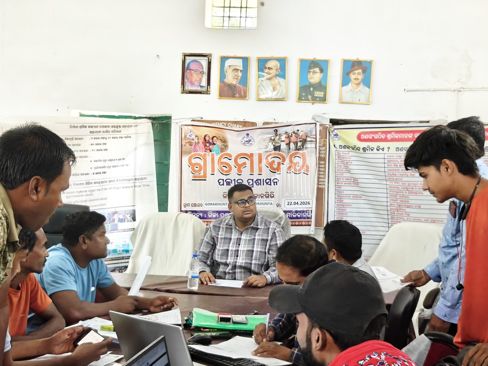 ମାଲକାନଗିରି,୨୩/୦୪(ପିପିଟି):ଜିଲ୍ଲାର ଶ୍ରମିକମାନଙ୍କୁ ସାମାଜିକ ସୁରକ୍ଷା ଜାଲରେ ବାନ୍ଧିବା ପାଇଁ ମାଲକାନଗିରି ଜିଲ୍ଲା ପ୍ରଶାସନ ଅତ୍ୟନ୍ତ ସକ୍ରିୟ ରହିଛି। ଏହି କ୍ରମରେ ଜିଲ୍ଲାପାଳ ପ୍ରଥମେଶ ଅରବିନ୍ଦ ରାଜଶିର୍କେ ଙ୍କ ପ୍ରତ୍ୟକ୍ଷ ମାର୍ଗଦର୍ଶନରେ ମାଲକାନଗିରି ବ୍ଲକ ଅନ୍ତର୍ଗତ ଗୋରାଖୁଣ୍ଟା ଗ୍ରାମ ପଞ୍ଚାୟତଠାରେ ଏକ ବିଶାଳ ସଚେତନତା ଓ ପଞ୍ଜିକରଣ ଶିବିର ସଫଳତାର ସହ ସମ୍ପନ୍ନ ହୋଇଯାଇଛି।