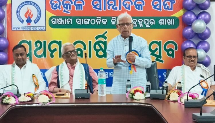 ବ୍ରହ୍ମପୁର,୧୧/୦୩(ପିପିଟି) : ଭାରତ ବର୍ଷର ୨୨ଟି ରାଜ୍ୟରେ ସାମ୍ୱାଦିକ ମାନଙ୍କୁ ପେନସନ ବ୍ୟବସ୍ଥା ଲାଗୁ ହୋଇଥିଲେ ମଧ୍ୟ ଓଡ଼ିଶାରେ ଦୀର୍ଘ ଚାରି ଦଶନ୍ଧି ଧରି ଏହି ବ୍ୟବସ୍ଥା ପ୍ରତିଶ୍ରୁତିରେ ହିଁ ରହିଛି ବୋଲି ଉତ୍କଳ ସାମ୍ୱାଦିକ ସଂଘ ଗଞ୍ଜାମ ଶାଖାର ପ୍ରଥମ ବାର୍ଷିକ ଅଧିବେଶନରେ ବକ୍ତାମାନେ ପ୍ରକାଶ କରିବା ସହ ରାଜ୍ୟ ସରକାର ନିଜ ପ୍ରତିଶ୍ରୁତି ରକ୍ଷା କରନ୍ତୁ ବୋଲି ଦାବି କରିଥିଲେ ।