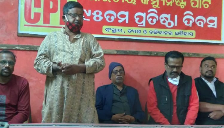 ବ୍ରହ୍ମପୁର,୨୬/୧୨(ପିପିଟି);ଭାରତୀୟ କମ୍ଯୁନିଷ୍ଟ ପାର୍ଟିର ୯୫ ତମ ପ୍ରତିଷ୍ଠା ଦିବସ ବ୍ରହ୍ମପୁର ପାର୍କ ସାହି ସ୍ଥିତ ଜିଲ୍ଲା କାର୍ଯ୍ୟାଳୟ ଠାରେ ଅନୁଷ୍ଠିତ ହୋଇଯାଇଛି । ପାର୍ଟିର ପତାକାକୁ ରାଜ୍ୟ ସମ୍ପାଦକ ମଣ୍ଡଳୀ ସଦସ୍ୟ ପ୍ରଶାନ୍ତ କୁମାର ପାଟ୍ଟଯୋଶୀ ଉତୋଳନ କରିଥିଲେ । ବ୍ରହ୍ମପୁର ଆଞ୍ଚଳିକ ସମ୍ପାଦକ ସୁଧାଂଶୁ ଶେଖର ପଣ୍ଡାଙ୍କ ସଭାପତିତ୍ବରେ ଅନୁଷ୍ଠିତ କାର୍ଯ୍ୟକ୍ରମରେ ସିପିଆଇ ଜିଲ୍ଲା ସମ୍ପାଦକ ପ୍ରକାଶ ପାତ୍ର ଯୋଗଦେଇ କମ୍ଯୁନିଷ୍ଟ ପାର୍ଟିର ସଂଗ୍ରାମ,ଦେଶର ଇତିହାସ ଏବଂ ଦେଶ ସମସ୍ଯା ଓ ରାଜନୈତିକ ପରିସ୍ଥିତି ଉପରେ ଆଲୋଚନା କରିଥିଲେ । ଏହି କାର୍ଯ୍ୟକ୍ରମରେ ଏଆଇୱାଇଏଫ୍ ରାଜ୍ୟ ସଭାପତି ପ୍ରଦୀପ କୁମାର ସେଠୀ,ଯୁବ ସଂଘ ଜିଲ୍ଲା ସଂପାଦକ କାମଦେବ ନାହାକ,ଶ୍ରମିକ ନେତା ଦଣ୍ଡପାଣି ସାମଲ ପ୍ରମୁଖ ଆଲୋଚନାରେ ଅଂଶଗ୍ରହଣ କରିଥିଲେ ।