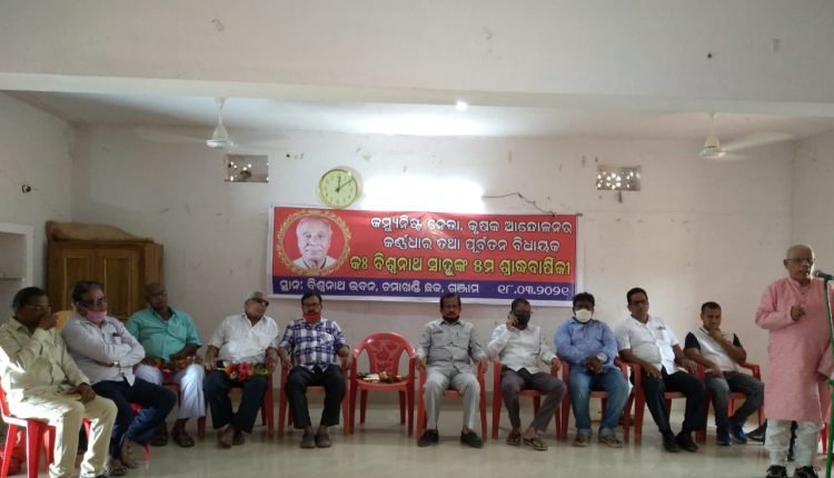ସିପିଆଇ ନେତା, କୃଷକ ଆନ୍ଦୋଳନର କର୍ଣ୍ଣଧାର ତଥା ଛତ୍ରପୁର ପୂର୍ବତନ ବିଧାୟକ ସାଥି ବିଶ୍ୱନାଥ ସାହୁଙ୍କ ୫ମ ଶ୍ରାଦ୍ଧ ବାର୍ଷିକ ଚମାଖଣ୍ଡି ଛକ ସ୍ଥିତ ବିଶ୍ୱନାଥ ଭବନ ଠାରେ ଅନୁଷ୍ଠିତ । ଛବିରେ ଖବର By PPT NEWS Last updated Mar 18, 2021 0 488 Share 0 488 Share