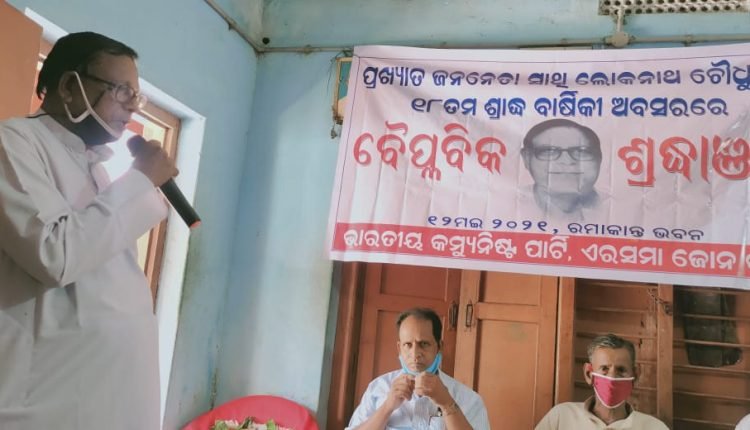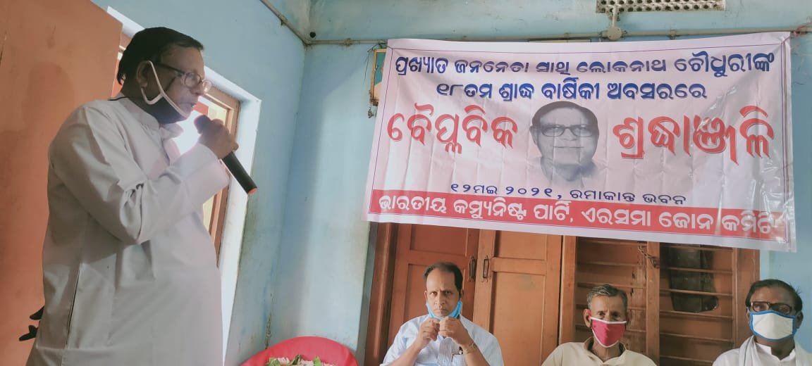 ଏରସମା,୧୨/୦୫(ପିପିଟି); କୋଭିଡ ନିୟମ ଓ କଟକଣା ମଧ୍ୟରେ କମ୍ମ୍ୟୁନିଷ୍ଟ ପାର୍ଟି ଏରସମା ଜୋନାଲ କମିଟି ପକ୍ଷରୁ ଏରସମା ପାର୍ଟି ଅଫିସ ରମାକାନ୍ତ ଭବନ ରେ ପାର୍ଟିର ପୂର୍ବତନ ରାଜ୍ୟ ସମ୍ପାଦକ, ବିଧାନସଭାରେ ପାର୍ଟିର ବିଧାୟକ ଦଳ ନେତା, ପୂର୍ବତନ ସାଂସଦ ଓ ନେତାମାନଙ୍କର ନେତା କମ୍ରେଡ ଲୋକନାଥ ଚୌଧୁରୀଙ୍କ ୧୮ତମ ଶ୍ରାଦ୍ଧ ବାର୍ଷିକୀ ପୂର୍ବତନ ବ୍ଲକ ଉପାଧ୍ୟକ୍ଷ ରାମଚନ୍ଦ୍ର ମୁଦୁଲିଙ୍କ ସଭାପତିତ୍ୱରେ ପାଳିତ ହୋଇଯାଇଛି । ଏହି ଶ୍ରଦ୍ଧାଞ୍ଜଳି ସଭାରେ ପାର୍ଟିର ଏରସମା ଜୋନ ସହ-ସମ୍ପାଦକ ଦାମୋଦର ବେହେରା କରୋନାରେ ମୃତ୍ୟୁବରଣ କରିଥିବା ସମସ୍ତ ବ୍ୟକ୍ତିମାନଙ୍କ ଉଦେଶ୍ୟରେ ଶୋକ ପ୍ରସ୍ତାବ ଆଗତ କରିଥିଲେ । ଏରସମା ପାର୍ଟିର ଜୋନ ସମ୍ପାଦକ ସାଥି ବଇଁଶୀଧର ବେହେରା, କୃଷକ ସଭାର ରାଜ୍ୟ ସଭାପତି ଶଶିଭୂଷଣ ସ୍ୱାଇଁ, ପାର୍ଟିର ଜିଲ୍ଲା ସମ୍ପାଦକ ଅଭିଜିତ ସାହୁ, ସହ- ସମ୍ପାଦକ ପିତାମ୍ବର ଦାସ, ଏରସମା ଜୋନ ସହ-ସମ୍ପାଦକ ସର୍ବେଶ୍ୱର ବେଉରା, ଯୁବ ନେତା ଦେବାଶିଷ ପରିଜା ପ୍ରମୁଖ ଲୋକନାଥ ଚୌଧୁରୀଙ୍କ ସ୍ମୃତି ଚାରଣ କରିବା ସହିତ ସରକାରୀ ଅବ୍ୟବସ୍ଥା ବିରୁଦ୍ଧରେ ଓ ସାଧାରଣ ମଣିଷଙ୍କ ପାଇଁ ଲଢ଼େଇକୁ ଆହୁରି ତୀବ୍ର କରିବାକୁ ଆହ୍ୱାନ ଦେଇଥିଲେ । ଅନ୍ୟମାନଙ୍କ ମଧ୍ୟରେ ସାଥି ମହେଶ୍ୱର ମହାପାତ୍ର, ସାଥି ସମରେଶ ମୁଦୁଲି, ସାଥି ଦେବଦତ୍ତ ଦାସ, ସାଥି ମାନସ ମୁଦୁଲି, ସାଥି ଗୋବିନ୍ଦ ଦାସ, ସାଥି ରଞ୍ଜନ ଦାସ, ସାଥି ଅମରେନ୍ଦ୍ର ଦାସ, ସାଥି ବିଜୟ ବେହେରା, ସାଥି ବସନ୍ତ ଦାସ ପ୍ରମୁଖ ଯୋଗ ଦେଇଥିଲେ ।