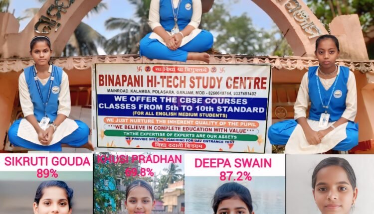 ପୋଲସରା,୨୦/୦୪ (ପିପିଟି) :୨୦୨୫-୨୬ ଶିକ୍ଷାବର୍ଷରେ ଅନୁଷ୍ଠିତ ସିବିଏସଇ ଦଶମ ଶ୍ରେଣୀ ପରୀକ୍ଷାରେ ଗଞ୍ଜାମ ଜିଲ୍ଲା ପୋଲସରା ବ୍ଲକ କଳମ୍ବ ଗ୍ରାମ ପଞ୍ଚାୟତ ସ୍ଥିତ ବୀଣାପାଣି ହାଇଟେକ୍ ଷ୍ଟଡି ସେଣ୍ଟର କଳମ୍ବର ଅଧ୍ୟୟନରତ ଛାତ୍ରୀମାନଙ୍କ ପରିଶ୍ରମ ଯୋଗୁଁ ଶତପ୍ରତିଶତ ସଫଳତା ହାସଲ କରିଛି । ବିଶେଷ କରି ଏହି ଷ୍ଟଡି ସେଣ୍ଟରର ନନ୍ଦିନୀ ପ୍ରଧାନ, ଅର୍ଚ୍ଚିତା ସାହୁ, ଖୁସବୁ ସାହୁ, ସ୍ଵୀକୃତି ଗୌଡ଼, ଦୀପା ସ୍ୱାଇଁ, ଖୁସି ପ୍ରଧାନ ଓ ଖୁସି ରାଣୀ ବେହେରା ।