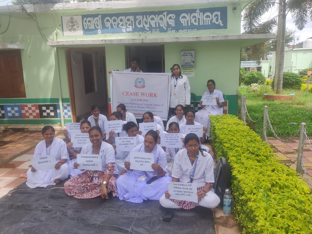 ଜି.ଉଦୟଗିରି,୨୫/୦୯: ୧୦ ଦଫା ଦାବୀ ନେଇ ଓଡିଶା ନର୍ସୀଂ କର୍ମଚାରୀ ସଂଘର ଆହ୍ବାନକ୍ରମେ ରାଜ୍ୟରେ ନର୍ସୀଂ କର୍ମଚାରୀ ସ୍ବାସ୍ଥ୍ୟକେନ୍ଦ୍ର ସମ୍ମୁଖରେ ଧର୍ମଘଟରେ ବସିଥିବା ବେଳେ ବୁଧବାର ଦିନ ଜି.ଉଦୟଗିରି ଗୋଷ୍ଟୀ ସ୍ବାସ୍ଥ୍ୟକେନ୍ଦ୍ରରେ ନିୟୋଜିତ ନର୍ସୀଂ କର୍ମଚାରୀମାନେ ମଧ୍ୟ ସ୍ବାସ୍ଥ୍ୟକେନ୍ଦ୍ର ସମ୍ମୁଖରେ ଧର୍ମଘଟରେ ବସିଥିଲେ।ସେମାନଙ୍କ ଦାବୀ ଗୁଡିକ ହେଲା ୧୩.୧୧.୨୦୧୩ ମସିହାରେ ନିଯୁକ୍ତି ପାଇଥିବା ନର୍ସୀଂ ଅଫିସର ମାନଙ୍କର ୬ ବର୍ଷ ଚୁକ୍ତିଭିତ୍ତିକ ଅବଧିକୁ ମୁଳ ଚାକିରୀ ସିମାରେ ମିଶାଇ ପଦୋନ୍ନତି ଦେବା ସହ ସମସ୍ତ ଆର୍ଥୀକ ସହାୟତା ଯୋଗାଇବା, ଯୋଗ୍ୟ ନର୍ସୀଂ ଅଫିସର ମାନଙ୍କୁ ବରିଷ୍ଠତା ଭିତିରେ ପଦୋନ୍ନତି କରାଯିବା ସହ ଆବଶ୍ୟକ ଥିବା ସ୍ଥିରୀକୃତ ସମୟକୁ କମ କରି ୧୬ ବର୍ଷରୁ ଉର୍ଦ୍ଧ୍ବ ସଭୟ ଧରି ଲୋକଙ୍କୁ ସେବା ଯୋଗାଇ ଆସୁଥିବା ନର୍ସୀଂ ଅଫିସରଙ୍କୁ ଏକକାଳୀନ ଦୁଇଟି ପଦୋନ୍ନତି ଦିଆଯାଉ,ବିଭିନ୍ନ ଆୟୁଷ୍ମାନ ଆରୋଗ୍ୟ କେନ୍ଦ୍ରରେ ନିୟୋଜିତ ନର୍ସୀଂ କର୍ମଚାରୀଙ୍କୁ ସିଏଚଓ ପଦବୀରୁ ଫେରାଇଆଣି ବିଭିନ୍ନ ସରକାରୀ ଡାକ୍ତରଖାନାରେ ସେବା ଯୋଗାଇବାକୁ ପଦକ୍ଷେପ ନିଆଯାଉ,ଅନ୍ୟ ରାଜ୍ୟ ଭଳି ଏନଏଚଏମ ଅଧିନରେ ଆୟୁଷ୍ମାନ ଆରୋଗ୍ୟ କେନ୍ଦ୍ରରେ ନୁତନ ସିଏଚଓ ଙ୍କୁ ନିଯୁକ୍ତି ଦିଆଯାଉ,ନିୟମିତ ହୋଇନଥିବା ନର୍ସୀଂ ଅଫିସରମାନଙ୍କୁ ତୁରନ୍ତ ନିୟମିତ କରାଯାଉ,ନର୍ସୀଂ ଅଫିସରମାନଙ୍କ ଡ୍ରେସ କୋଡ ପରିବର୍ତ୍ତନ କରାଯାଉ,ଆଉଟସୋର୍ସୀଂ ଏଜେଣ୍ଟ ମାଧ୍ୟମରେ ନିଯୁକ୍ତି ବ୍ୟବସ୍ଥାକୁ ସମ୍ପୁର୍ଣ୍ଣ ବନ୍ଦ କରାଯିବା ସହ ସରକାରଙ୍କ ପୁର୍ବ ନିଷ୍ପତ୍ତିକୁ ପ୍ରତ୍ୟାହାର କରାଯାଉ, କେବିକେ ଓ କେବିକେ+ ଏବଂ ଆଦିବାସୀ କଠିନ ପ୍ଳାନ ଅଞ୍ଚଳରେ ନିୟୋଜାତ ନର୍ସୀ କର୍ମଚାରୀଙ୍କୁ ସ୍ଥାନ ଭିତିକ ପ୍ରୋତ୍ସାହନ ରାଶି ପ୍ରଦାନ କରାଯାଉ,ଜରୁରୀକାଳୀନ ସେବାରେ ଯେହେତୁ ନର୍ସୀଂ କର୍ମଚାରୀମାନେ ନିୟୋଜନ ଥାଆନ୍ତି,ତେଣୁ ସରକାରୀ ଭାବେ ସ୍ଥିରୀକୃତ ସମସ୍ତ ସାଧାରଣ ଛୁଟିଦିନ ବଦଳରେ ନର୍ସୀଂ ଅଫିସରଙ୍କ କ୍ଷେତ୍ରରେ କ୍ଷତି ପୁରଣ ଛୁଟି/ଦରମା ପ୍ରଦାନ କରାଯିବା ସହ ଏ ସମ୍ବନ୍ଧରେ ସ୍ଥାୟୀ ନିର୍ଦ୍ଦେଶାନାମା ଜାରୀ କରାଯାଉ।