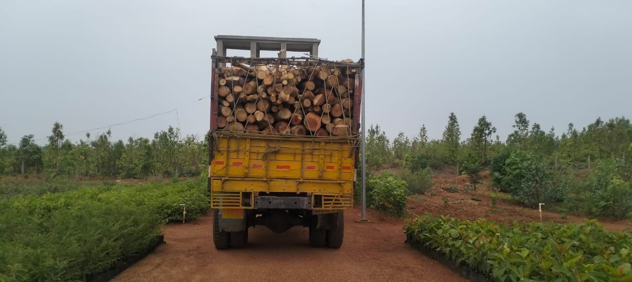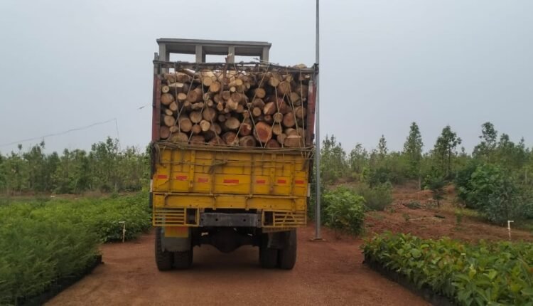 ୧୨ ଚକିଆ କାଠ ବୋଝେଇ ଦୁଇଟି ଟ୍ରକ୍ ଅଟକ ।