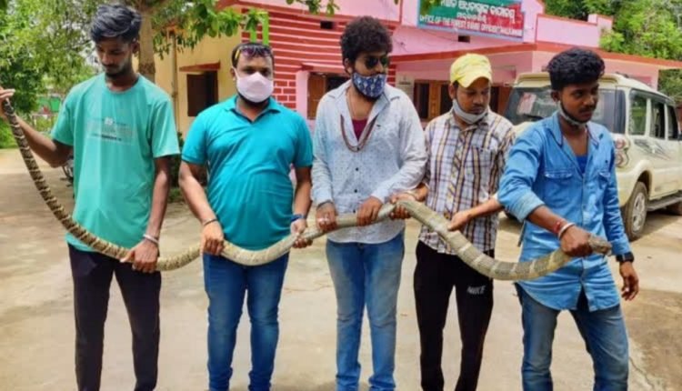 ମାଲକାନଗିରି,ତା:୨୦/୦୬(ପିପିଟି);୧୨ ଫୁଟ ଲମ୍ବର ଏକ ଅହିରାଜ ସାପ ଉଦ୍ଧାର ହୋଇଛି । ମାଲକାନଗିରି ଜିଲ୍ଲା ତାଟିଗୁଡ଼ା ଗ୍ରାମବାସୀ ସାପଟିକୁ ଦେଖିବାକୁ ପାଇଥିଲେ । ତେବେ ସାପଟି ଜଣଙ୍କ ଘର ପଛ ପଟେ ଥିବା ପୋଖରୀରେ ପଶି ଯାଇଥିଲା । ପରେ ସ୍ନେକ ହେଲ୍ପ ଲାଇନ୍ ସଦସ୍ୟଙ୍କୁ ସାପ ସଂପର୍କରେ ସୂଚନା ଦିଆଯାଇଥିଲା । ସ୍ନେକ ହେଲ୍ପଲାଇନ ଟିମ୍ ଘଟଣାସ୍ଥଳରେ ପହଞ୍ଚି ଅହିରାଜଟିକୁ ଉଦ୍ଧାର କରିଥିଲେ । ଏଥିପାଇଁ ସେମାନଙ୍କୁ ଏକ ଘଣ୍ଟା ପରିଶ୍ରମ କରିବାକୁ ପଡ଼ିଥିଲା । ଖାଦ୍ୟ ଅନ୍ବେଷଣରେ ଅହିରାଜ ସାପଟି ଜଙ୍ଗଲରୁ ବାହାରି ଜନବସିତ ଆଡ଼କୁ ଆସିଯାଇଥିବା କହିଛନ୍ତି ମାଲକାନଗିରି ବନଖଣ୍ଡ ଅଧିକାରୀ ପ୍ରଦୀପ ମିରାସେ । ଏହାସହ ପ୍ରାଥମିକ ଚିକିତ୍ସା ପରେ ସାପଟିକୁ ଜଙ୍ଗଲରେ ଛଡ଼ାଯିବ ବୋଲି ସେ ସୂଚନା ଦେଇଛନ୍ତି ।