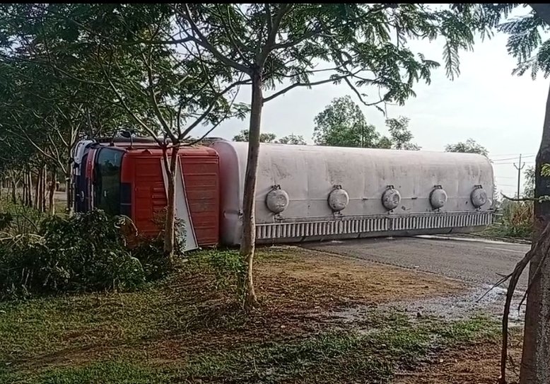 ଭଞ୍ଜନଗର,୦୮/୦୫(ପିପିଟି); ବିଜୟୱାଡ଼ା-ରାଞ୍ଚି କରିଡର ୨୧୭ନଂ ଜାତୀୟ ରାଜପଥ ଅନର୍ଗତ ଭଞ୍ଜନଗର ଠାରୁ ବ୍ରହ୍ମପୁର ମୁଖ୍ୟ ରାସ୍ତାର ଗୋବରା ଓ ଶଢଙ୍ଗୀ ପଲ୍ଲି ମଧ୍ୟ ଭାଗରେ ଗତ ରାତି ପ୍ରାୟ ୨ଟା ସମୟରେ ବୌଦ୍ଧ ଠାରୁ ସ୍ପିରିଟ ବୋଝେଇ ଏକ ଟ୍ୟାଙ୍କର ଆସ୍କା ସୁଗର ଫ୍ୟାକ୍ଟ୍ରିକୁ ଯାଉଥିବା ବେଳେ ଡ୍ରାଇଭରର ଆଖି ପଡିଯିବାରୁ ଭାରସାମ୍ୟ ହରାଇ ଗାଡ଼ିଟି ହାଠାତ୍ ରାସ୍ତା ଉପରେ ଓଲଟି ପଡ଼ିଥିଲା।ଫଳରେ ରାସ୍ତାଟି ସମ୍ପୁର୍ଣ୍ଣ ଅବରୋଧ ଯୋଗୁଁ ଚଳାଚଳ ବନ୍ଦ ରହିଥିଲା।ଫଳରେ ରାସ୍ତାର ଉଭୟ ପଟେ ବହୁ ଗାଡ଼ି ମଟର ଦୀର୍ଘ ସମୟ ପର୍ଯ୍ୟନ୍ତ ଅଟକି ରହିଥିଲା।ଟ୍ୟାଙ୍କର ରୁ ସ୍ପିରିଟ ବାହାରି ରାସ୍ତାସାରା ପଡ଼ିଥିବାରୁ ଲୋକମାନେ ଭୟଭୀତ ହୋଇ ପଡିଥିଲେ। ଖବର ପାଇ ଗାଙ୍ଗପୁର ଥାନା ଅଧିକାରୀ ଧୀରେଶ କୁମାର ଦାଶ ଘଟଣା ସ୍ଥଳରେ ପହଞ୍ଚି ଗାଡ଼ିରେ ଗୁରୁତର ଅବସ୍ଥାରେ ଥିବା ଡ୍ରାଇଭର ଓ ହେଲ୍ପରକୁ ଉଦ୍ଧାର କରି ଭଞ୍ଜନଗର ମେଡ଼ିକାଲକୁ ପଠେଇଥିଲେ।ରାସ୍ତାର ଉଭୟ ପାର୍ଶ୍ଵରେ ପୋଲିସ ଉପସ୍ଥିତ ରହି ଜରୁରୀ କାଳୀନ ସେବା ଯୋଗାଉଥିବା ଆମ୍ବୁଲାନ୍ସ ଓ ଛୋଟ ଯାନବାହନ ଗୁଡିକୁ ଏକ ଡାଇଭର୍ସନ ରୋଡ଼ରେ ଛାଡିଥିଲେ। ଦୁଇଟି କ୍ରେନ ସାହାଯ୍ୟରେ ଉକ୍ତ ଟ୍ୟାଙ୍କରକୁ ଉଠାଯାଇ ରାସ୍ତା କଡରେ ରଖାଯାଇଥିଲା। ଭଞ୍ଜନଗର ରୁ ଅଗ୍ନିଶମ ବିଭାଗ ଆସି ରାସ୍ତାରେ ପ୍ରଥମେ ପାଣି ଓ ପରେ ପ୍ରୋଟିନ ସ୍ନୋ ସ୍ପ୍ରେ କରି ବିପଦ ମୁକ୍ତ କରିବା ପରେ ଦିନ ୧୧ଟା ସମୟରେ ଯାତାୟାତ ସ୍ୱାଭାବିକ ହୋଇଥିଲା। ଗୁରୁତର ଆହତ ହୋଇଥିବା ଡ୍ରାଇଭର ଜଣଙ୍କ ନୟାଗଡ଼ର ରୋହିତ କୁମାର ନାୟକ ବୋଲି ଜଣାପଡ଼ିଛି।
