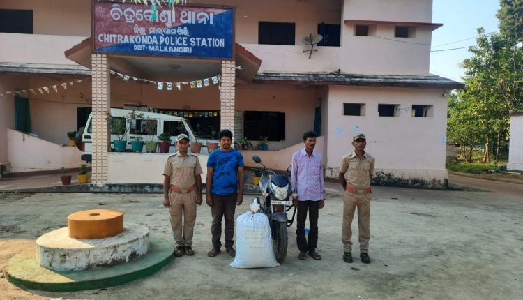 ମାଲକାନଗିରି,୨୯/୧୦(ପିପିଟି): ଚିତ୍ରକୋଣ୍ଡା ପୋଲିସ ଦ୍ଵାର ମନ୍ତ୍ରୀପୁଟ, ସ୍ପିଲୱେ ଅଞ୍ଚଳରେ ରାତ୍ରି କାଳିନ ଯାନବାହାନ ଯାଞ୍ଚ କରିବା ସମୟରେ ଗୋଟିଏ ହୋଣ୍ଡା ୟୁନିକନ୍ ଗାଡ଼ି ନଂ: ଓଡି ୩୦ ଏ ୫୩୩୭କୁ ଅଟକାଇବା ସମୟରେ ପୋଲିସକୁ ଦେଖି ଗାଡ଼ିରେ ଥିବା ଦୁଇ ଜଣ ବ୍ୟକ୍ତି ଗାଡି ଛାଡି ଜଙ୍ଗଲ ଆଡକୁ ଦୌଡ଼ିଲେ । ତୁରନ୍ତ ପୋଲିସ ଦଳ ସେମାନଙ୍କୁ ଗୋଡାଇ କାବୁ କରିବାରେ ସକ୍ଷମ ହୋଇଥିଲେ। ପଚରା ଉଚରା ବେଳେ ପୋଲିସ ସେମାନଙ୍କ ନିକଟରେ ଗଞ୍ଜେଇ ଥିବା ଜାଣିବାକୁ ପାଇଥିଲା। ଗଞ୍ଜେଇକୁ ଜବତ କରି ୨ ଜଣ ଅଭିଯୁକ୍ତଙ୍କୁ ଥାନାକୁ ନିଆଯାଇଥିଲା । ଜବତ ଗଞ୍ଜେଇ ର ପରିମାଣ ୨୨ କେଜି ୧୦୦ ଗ୍ରାମ ହୋଇଥିବା ବେଳେ ଏନେଇ ଚିତ୍ରକୋଣ୍ଡା ଥାନା କେଶ ନଂ ୧୪୮/୨୨ ଅନୁଯାୟୀ ଏକ ମାମଲା ରୁଜ୍ଜୁ କରାଯାଇଛି । ଦୁଇ ଜଣ ଅଭିଯୁକ୍ତ ହେଲେ ତିଲୀ ଗୋଲରୀ (୩୭) ଏବଂ ମଲିକି ପାଙ୍ଗି(୨୮)ଙ୍କୁ ଆଜି କୋର୍ଟକୁ ଚାଲାଣ କରାଯାଇଛି।