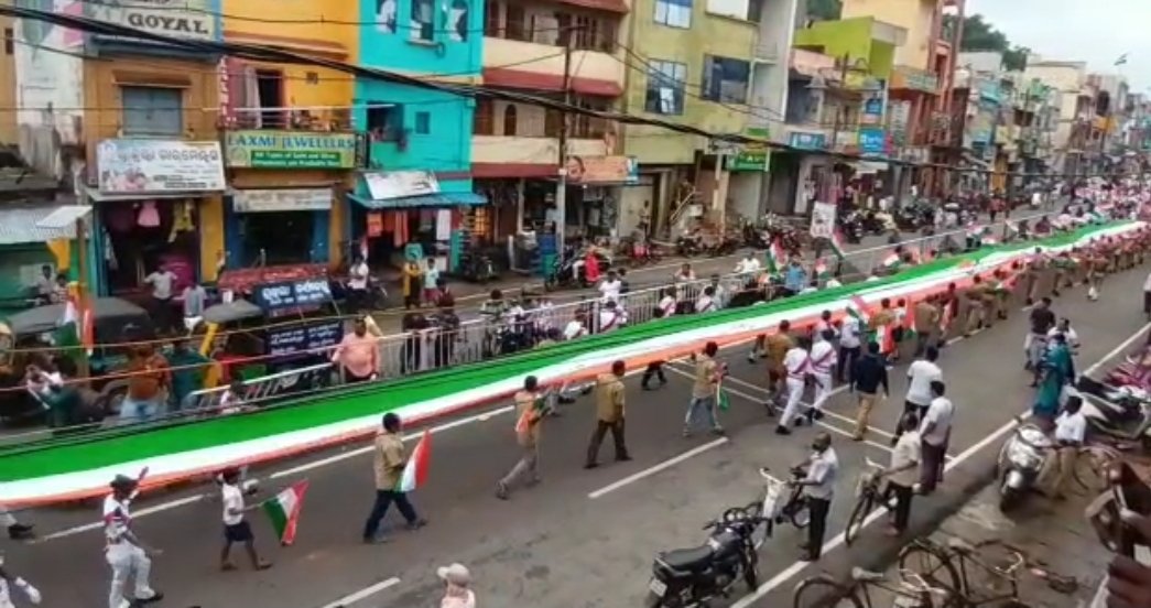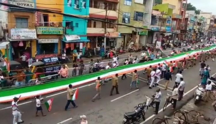 ୭୫ମିଟର ଲମ୍ବ ତ୍ରିରଙ୍ଗା ଧରି ସହର ପରିକ୍ରମା ।