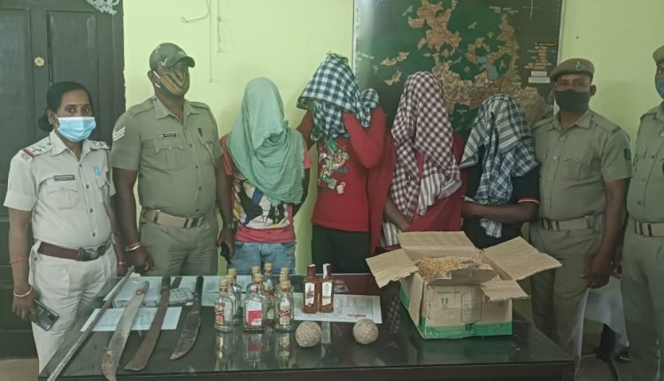 ଭଞ୍ଜନଗର,୧୭/୦୨(ପିପିଟି): ମଙ୍ଗଳବାର ରାତି ପ୍ରାୟ ୨ଟା ସମୟରେ ଭଞ୍ଜନଗର ଥାନା ଅନ୍ତର୍ଗତ ଜିଲୁଣ୍ଡି ଛକରେ ୫ଜଣ ଯୁବକ ବିଭିନ୍ନ ମାରଣାସ୍ତ୍ର ସାହାଯ୍ୟରେ ଡକାୟତି ଯୋଜନା କରୁଥିବା ବେଳେ ପୁଲିସ ହାବୁଡ଼ରେ ପଡ଼ିଥିଲେ।ସେଥିମଧ୍ୟରୁ ବ୍ରହ୍ମପୁର ହରଡ଼ା ଖଣ୍ଡି ଅଞ୍ଚଳର କବିରାଜ ନାୟକ(୩୪),ପପୁନ ନାୟକ(୨୨),ଟୁକୁନା ନାୟକ(୨୧) ଓ ବଳିଆ ନାୟକ(୨୨)ଙ୍କୁ ପୁଲିସ ଗିରଫ କରି ସେମାନଙ୍କ ଠାରୁ ଗୋଟିଏ କାତି, ଦୁଇଟି ଖଣ୍ଡା, ଗୋଟିଏ ଲୁହା ଛଡ଼, ଦୁଇଟି ଲାଠି, ଦୁଇଟି ଜୀବନ୍ତ ବୋମା,୭ଟି ବୋତଲ ବୋମା ଓ କିଛି ଲଙ୍କା ଗୁଣ୍ଡ ପ୍ୟାକେଟ ଜବତ କରିଛି।ଅନ୍ୟଜଣେ ଅପରାଧୀ ଖସି ଯିବାରେ ସକ୍ଷମ ହୋଇଛି। ପୁଲିସ ଏସ.ଆଇ ମନସ୍ୱିନୀ ମହାନ୍ତିଙ୍କ ନେତୃତ୍ୱରେ ଅନ୍ୟ ପୁଲିସ କର୍ମଚାରୀ ବଳରାମ ଜେନା, ଅଶ୍ୱିନୀ କୁମାର ସ୍ୱାଇଁ, ପଙ୍କଜ ବିଷୋୟୀ ଓ ଅନ୍ୟମାନେ ପେଟ୍ରୋଲିଂ କରୁଥିବା ବେଳେ ସନ୍ଦେହ ଜନକ ଅବସ୍ଥାରେ ଏହି ଯୁବକ ମାନଙ୍କୁ ଧରିଥିଲେ।ଭଞ୍ଜନଗର ଥାନା କେଶ ନଂ ୯୩/୨୨ରେ ଏକ ମାମଲା ରୁଜୁ କରାଯାଇ ଅପରାଧୀ ମାନଙ୍କୁ କୋର୍ଟ ଚାଲାଣ କରାଯାଇଛି।