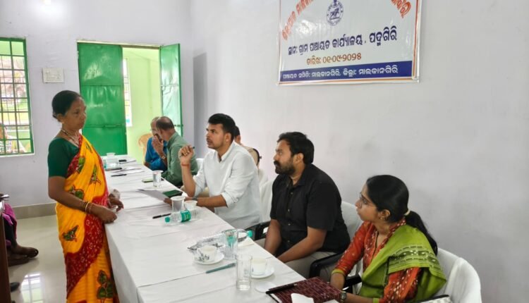 ମାଲକାନଗିରି, ୦୧/୦୯(ପିପିଟି):ଆଜି ମାଲକାନଗିରି ବ୍ଲକ୍ ପଦ୍ମଗିରି ଗ୍ରାମ ପଞ୍ଚାୟତ କାର୍ଯ୍ୟାଳୟ ରେ ଯୁଗ୍ମ ଜନ ଅଭିଯୋଗ ଶୁଣାଣି ଅନୁଷ୍ଠିତ ହୋଇଯାଇଛି। ଏଥିରେ ଜିଲ୍ଲାପାଳ ସୋମେଶ ଉପାଧ୍ୟାୟ ଓ ଆରକ୍ଷୀ ଅଧିକ୍ଷକ ବିନୋଦ ପାଟିଲ ଏଚ୍ ଉପସ୍ଥିତ ରହି ଜନସାଧାରଣଙ୍କର ଅଭିଯୋଗ ଗୁଡ଼ିକର ଶୁଣାଣି କରିଥିଲେ।