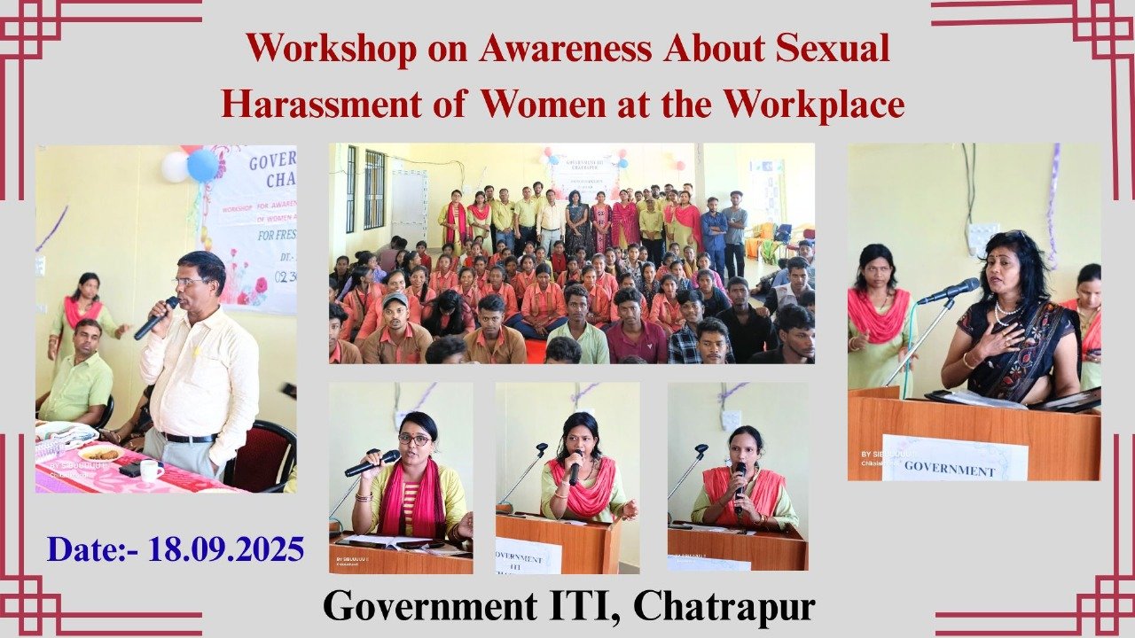 ସରକାରୀ ଆଇଟିଆଇ ଛତ୍ରପୁର କର୍ମସ୍ଥଳୀରେ ମହିଳାମାନଙ୍କ ଯୌନ ନିର୍ଯାତନା ବିଷୟରେ ସଚେତନତା ଉପରେ କର୍ମଶାଳା ।