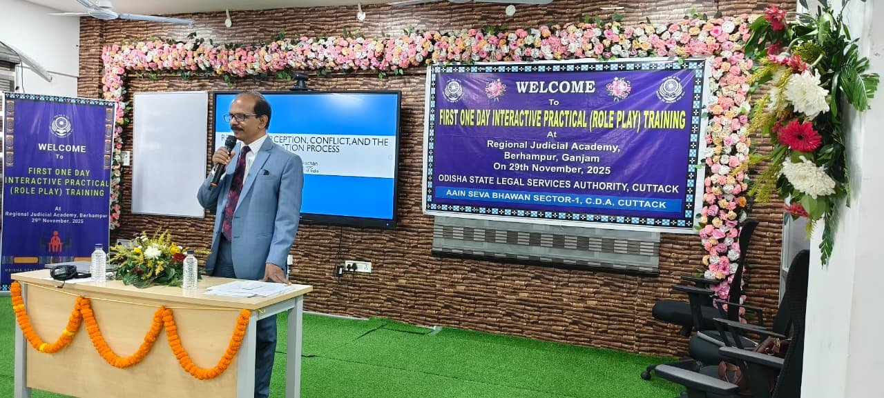 ବ୍ରହ୍ମପୁର:୩୦/୧୧(ପିପିଟି):ଓଡିଶା ରାଜ୍ୟ ଆଇନ ସେବା ପ୍ରାଧିକରଣ, କଟକଙ୍କ ନିର୍ଦ୍ଦେଶରେ ଜିଲ୍ଲା ଆଇନ ସେବା ପ୍ରାଧିକରଣ, ଗଞ୍ଜାମ , ବ୍ରହ୍ମପୁର ଦ୍ୱାରା ପ୍ରଥମ ଏକ ଦିବସୀୟ ପାରସ୍ପରିକ ବ୍ୟବହାରିକ ତାଲିମ କାର୍ଯ୍ୟକ୍ରମ ଆଞ୍ଚଳିକ ନ୍ୟାୟିକ ଏକାଡେମୀ ବ୍ରହ୍ମପୁର ଠାରେ ଆୟୋଜିତ ହୋଇଯାଇଛି । ଏହି ତାଲିମ ରେ ନୟାଗଡ଼,ଫୁଲବାଣୀ, ମାଲକାନଗିରି ,ଗଜପତି, ନବରଙ୍ଗପୁର, ରାୟଗଡ଼ା ,କୋରପୁଟ ଓ କଳାହାଣ୍ଡି ର ଜିଲ୍ଲା ଜଜ ଏବଂ ଉକ୍ତ ଜିଲ୍ଲା ଆଇନ ସେବା ପ୍ରାଧିକରଣର ସଚିବ ମାନେ ଅଂଶ ଗ୍ରହଣ କରିଥିଲେ । ଭି.ପି.ଥନକଚନ ସିନିୟର୍ ଟ୍ରେନର, ଏମ୍ସିପିସି,ସୁପ୍ରିମ କୋର୍ଟ ଅଫ ଇଣ୍ଡିଆ ତାଲିମ୍ ପ୍ରଦାନ କରିଥିଲେ । ବ୍ୟୋମକେଶ ନାୟକ , ଭାରପ୍ରାପ୍ତ ଡେପୁଟି ଡାଇରେକ୍ଟର ଅତିଥି ପରିଚୟ ପ୍ରଦାନ କରିଥିଲେ ।