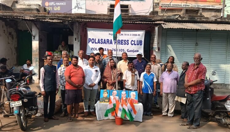 ପୋଲସରା ,୨୬/୦୧(ପିପିଟି) :ଆଜି ସମଗ୍ର ଭାରତ ବର୍ଷରେ ୭୭ ତମ ଗଣତନ୍ତ୍ର ଦିବସ ମହାସମାରୋହରେ ବହୁ ଉତ୍ସାହ ଏବଂ ଉଦ୍ଦିପନା ମଧ୍ୟରେ ପାଳିତ ହୋଇଯାଇଛି। ଏହି କ୍ରମରେ ଗଞ୍ଜାମ ଜିଲ୍ଲା ପୋଲସରା ଅଞ୍ଚଳର ଏକମାତ୍ର ପଞ୍ଜିକୃତ ପୋଲସରା ପ୍ରେସ୍ କ୍ଲବ୍ ପକ୍ଷରୁ ଏହି ସାମ୍ବିଧାନିକ ଦିବସ ପାଳିତ ହୋଇଯାଇଛି।