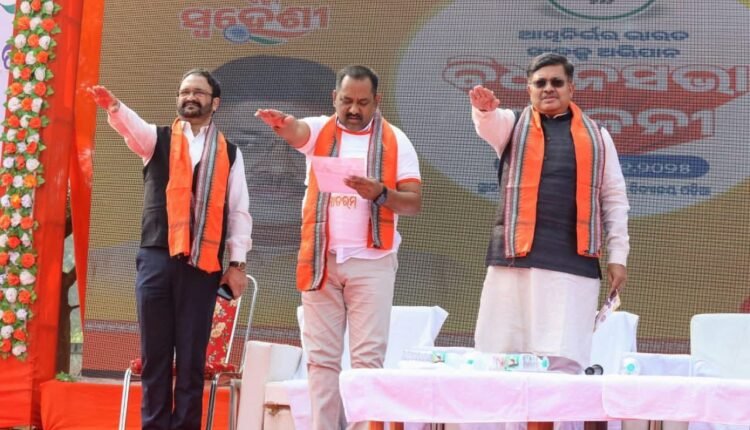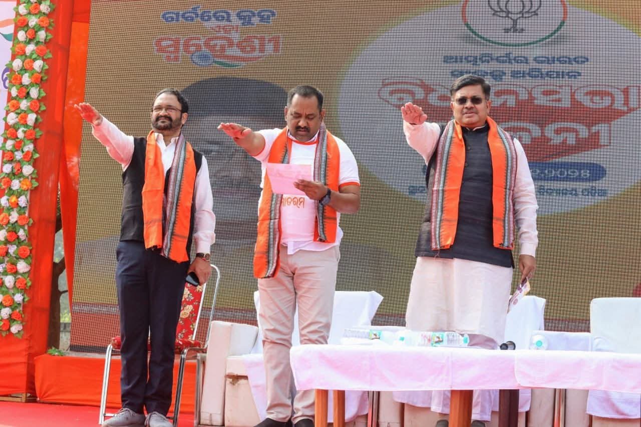 JAJPUR,25/11(PPT): The Badachana BJP celibreted commemorated the 150th anniversary of Vande Mataram with a vibrant celebration that honoured the song’s legacy as a symbol of patriotism, unity, and self-confidence at Darpangarh In Jajpur District On Tuesday . The event was marked by speeches, cultural tributes, and a collective pledge to embrace indigenous goods and values.Speaking at the event,Odisha Law Minister Prithviraj Harichandan described Vande Mataram as more than a song national emblem of courage and unity. He highlighted its origins in Bankim Chandra Chattopadhyay’s 1875 publication in Bangadarshan, and its transformation into a rallying cry during India’s freedom movement. Minster noted that Vande Mataram was first sung publicly by Rabindranath Tagore at the 1896 Congress session in Kolkata and later adopted as India’s national song alongside Jana Gana Mana in 1950. He emphasized its rare distinction of being used consistently for 150 years across languages and platforms. MLA Amar kumar Nayak Said Our Prime Minister Narendra Modi marked the occasion nationally by unveiling a commemorative postal stamp and a Rs150 coin. The celebration aligns with his call to honor India’s cultural heritage and rekindle patriotic spirit across the country.Minster administered a pledge encouraging the use of swadeshi products and self-reliance.The event also featured cultural performances and historical reflections on the song’s role in shaping India’s identity. The programme was chaired by Jajpur BJP District President Debajani pradhan and attended by prominent leaders .