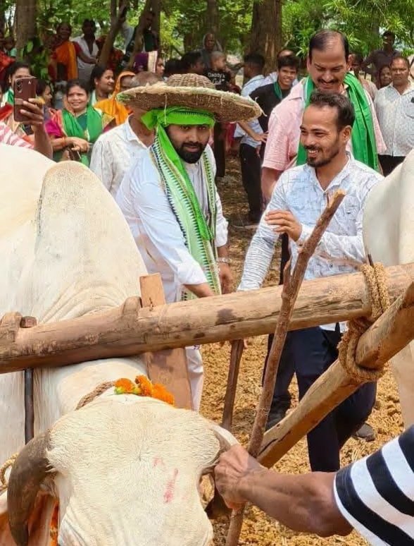 Jajpur20/04(PPT):Former Minster Priti ranjan Ghadei performed the auspicious ‘Akhi Muthi Anukula’ ritual at Rajagola Under Sukinda Block in Jajpur District on the occasion of Akshaya Tritiya.Akshaya Tritiya is considered one of the most sacred festivals in Odisha and is celebrated with deep religious and cultural significance. It is believed that any activity started on this day brings prosperity and success Said Pradip. On this day, farmers across the state perform Akhi Muthi Anukula, symbolising the beginning of the agricultural season. They worship the earth and sow seeds, seeking blessings for a good harvest. The festival holds immense importance in rural Odisha and is often regarded as a farmers’ festival. It also marks the beginning of chariot construction for the Rath Yatra of Lord Jagannath said Ghadei.Ghadai said in his speech that your presence in Sukinda today shows how strong and organized the BJD In the last 22 months, the development of Sukinda has stalled. Peaceful Sukinda has become restless today. Our joint efforts will bring smiles to the faces of the people of Sunar Sukinda. He Said “The campaign will raise public awareness on key issues such as the current government’s failure to fulfil promises, atrocities against women, deterioration of law and order, attempts to undermine democratic and constitutional institutions, neglect of farmers’ concerns, unemployment, among others,” The party will also flag challenges faced by students, price rise, and discrimination against SC-ST communities, backward classes and minorities. BJD cadres will also showcase people-oriented programmes implemented by the BJD government over the years. “The Mohan Majhi government has completely failed in tackling law and order issues in the state Added Ghadei.