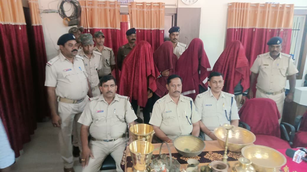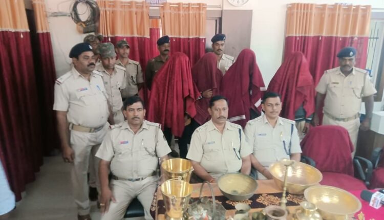 Jajpur,23/11(PPT): Police have on Sunday claimed to have busted and idol lifter gang for their involvement in around four temple theft cases and arrested its four key members in Jajpur district. Police also recovered many stolen articles of the deities and temple from them. All the four accused have been identified as Satyaranjan Das (21) of Mangalpur , Bishamber Das(23) of Dankari village, Maheswar Kundu (24) of Routraypur and Mohan Sahoo (28) of Kuakhia village.Undetected thefts occurred from around four temples in this month under the police station of Dharamsala areas in the district. Thefts in many temples usually hurt the sentiments of devotees and others. Taking view of the feelings of the general public we formed a special unit and the team worked intermittently to nab the accused persons of temple thefts. We seized many brass bells, brass utensils and other apparels of the deities from them , said the Sub- Divisional Police Officer (SDPO), Jajpur , Laxmidhar Swain. Further investigation in the case is under progress and raids are being carried out to apprehend other accused persons suspected to be involved in the racket , added the police officer. All the arrested criminals were booked under 331 (1) and 305 (d) of BNS . They were produced in the local court on Sunday. The court rejected their bail applications and remanded them in judicial custody, added the police officer.