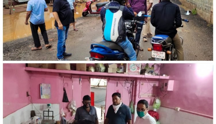 Dharamsalsa tehsildar Saroj Kumar Panda ,IIC Saroj Kumar sahoo  and additional tehsildar Debi Prasad Mohanty on Wednesday sealed some sweetstall in local market and collected penalties from some bikers who violated covid restrictions.
