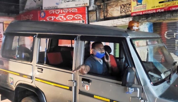 Dharamsala IIC Saroj Kumar Sahoo enforcing lockdown regulation at the local market. Mr Sahoo himself drove the vehicle to take around.