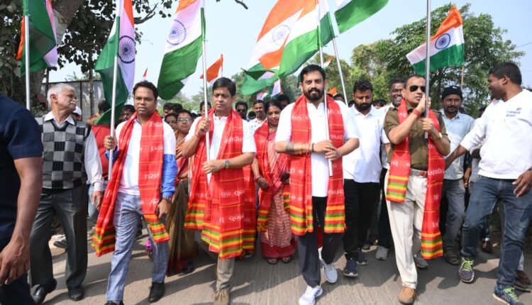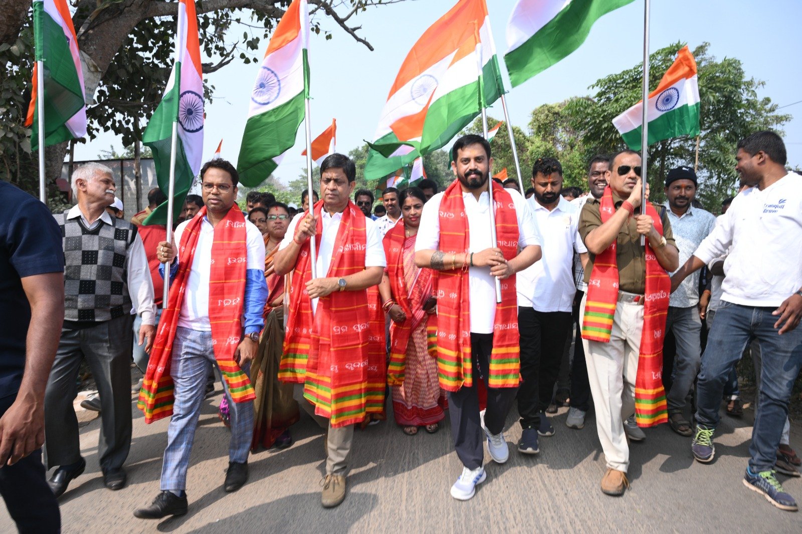 JAJPUR,25/11(PPT): MLA Himanshu sekhar Sahoo on Tuesday inaugurated the Ekta Padayatra at Dharmasala Indian Jajpur district to mark the 150th birth anniversary of Sardar Vallabhbhai Patel, the Iron Man of India. Hundreds of students, youth, and government officials participated in the padyatra, carrying a tricolor flag, as they covered a distance of approximately 8 kilometers from Nakpol to Kaima. The event is part of the Ekta Year celebrations, aimed at promoting unity and integrity across the state and country. In his address, MLA Himanshu described the padyatra as a symbol of Indian unity and a reminder of citizens’ responsibility to uphold national integrity.He emphasized the significance of jajpur in the freedom movement, The MLA called for unity across diverse groups, stressing that the nation’s strength lies in its unity in diversity. He also highlighted the government’s commitment to youth welfare, urging them to contribute to the nation’s progress. MP Rabindra behera Said Ekta Padayatra was “not merely a march but a symbol of Indianness,” reflecting every citizen’s duty to preserve national unity. District Collector Amber Kumar Kar Said the crucial role of youth in fulfilling Sardar Patel’s vision of a united India. He highlighted Patel’s immense contributions to the nation especially his leadership in the farmers’ movement and his decisive role as deputy Prime Minister in shaping India’s unity. The event was attended by several prominent figures, Including Bjp Leader Pradip kumar Parida,Jitendra Rout,Rajesh kumar Pal,Ayushman Priyadarshan& other official were present.