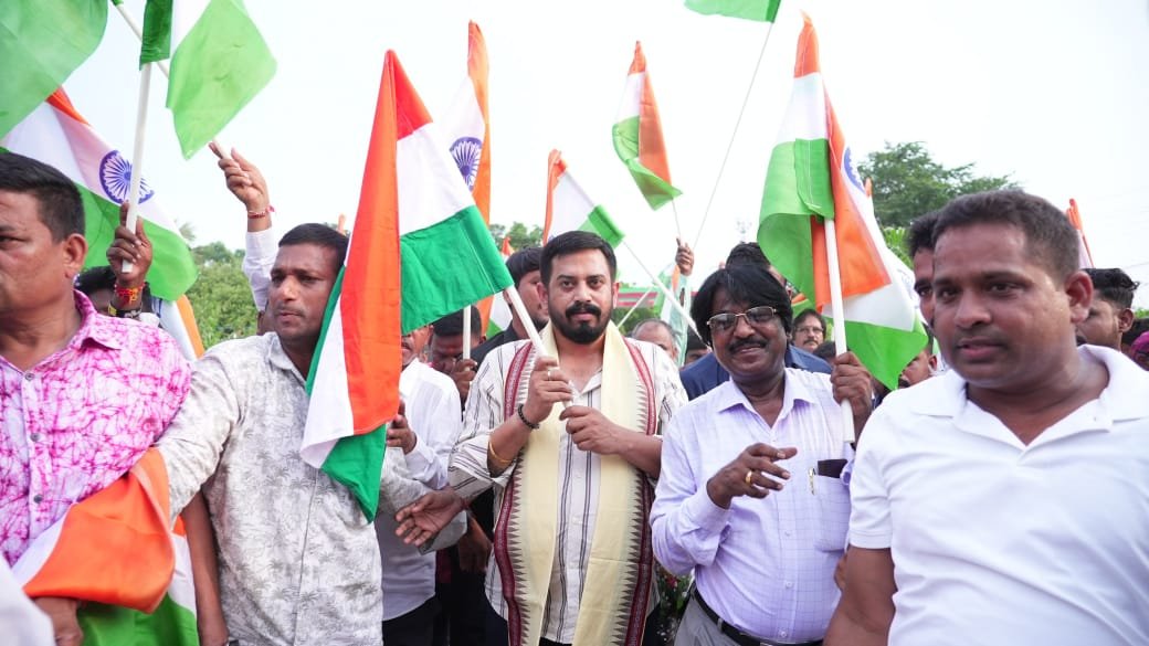 JAJPUR,11/08(PPT): Hundreds of people took part in the Tiranga Yatra At Gangadharpur Under Dharmasala Block In Jajpur District on Monday. organised by the BJP’s Dharmasala unit to mark ‘August Kranti Diwas’. The rally, led by MLA Himanshu sekhar Sahoo covered around two kilometres from Nakpol to Gangadharpur BJP supporters,members of various civil organisations,ex-servicemen, among others, participated in the rally to generate patriotic spirit ahead of the celebration of Independence Day and to praise the armed forces for carrying out the recent Operation Sindoor. the rally also commemorated the Quit India Movement of 1942. “It’s not merely a movement, but it was the symbol of united courage and faith across the country which helped to achieve freedom,” said Himanshu. He urged the citizens to unite for a self-reliant India and to help achieve Viksit Odisha and Viksit Bharat, as envisioned by Prime Minister Narendra Modi. “There is a need for a people’s movement for the use of swadeshi products to strengthen our economy,” he added.Himanshu said the rally was a tribute to freedom fighters and soldiers who sacrificed their lives for the nation. Among Other Youth Ledaer Pradip kumar parida, Jitendra rout,Rajesh kumar Pal .Goutamkumar Sahoo, Anshuman Ratha, Biswajit Prusty and Others were present.