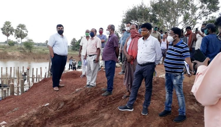 Jajpur,16/09(PPT) Mr Chakravarti Singh Rathore, the new Collector of Jajpur, on Wednesday visited Naubanka breach near Singhapur under Binjharpur block and assessed the progress of the repair work. Also present with him were ADM Akshaya Kumar Mallick and local water resources department executive engineer Dhaneswar Samal.
