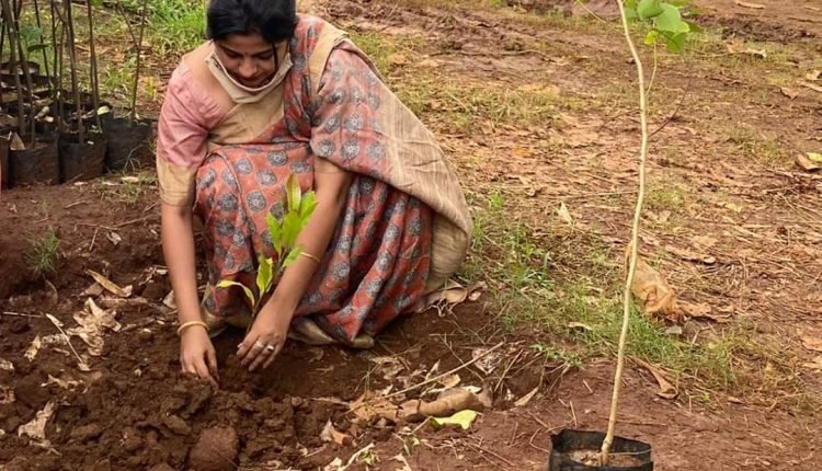 MLA Pritiranjan Ghadai’s wife and actress Jhilik Bhattacharjya Ghadei  plant Tree at Danagadi in Jaipur district on Wednesday