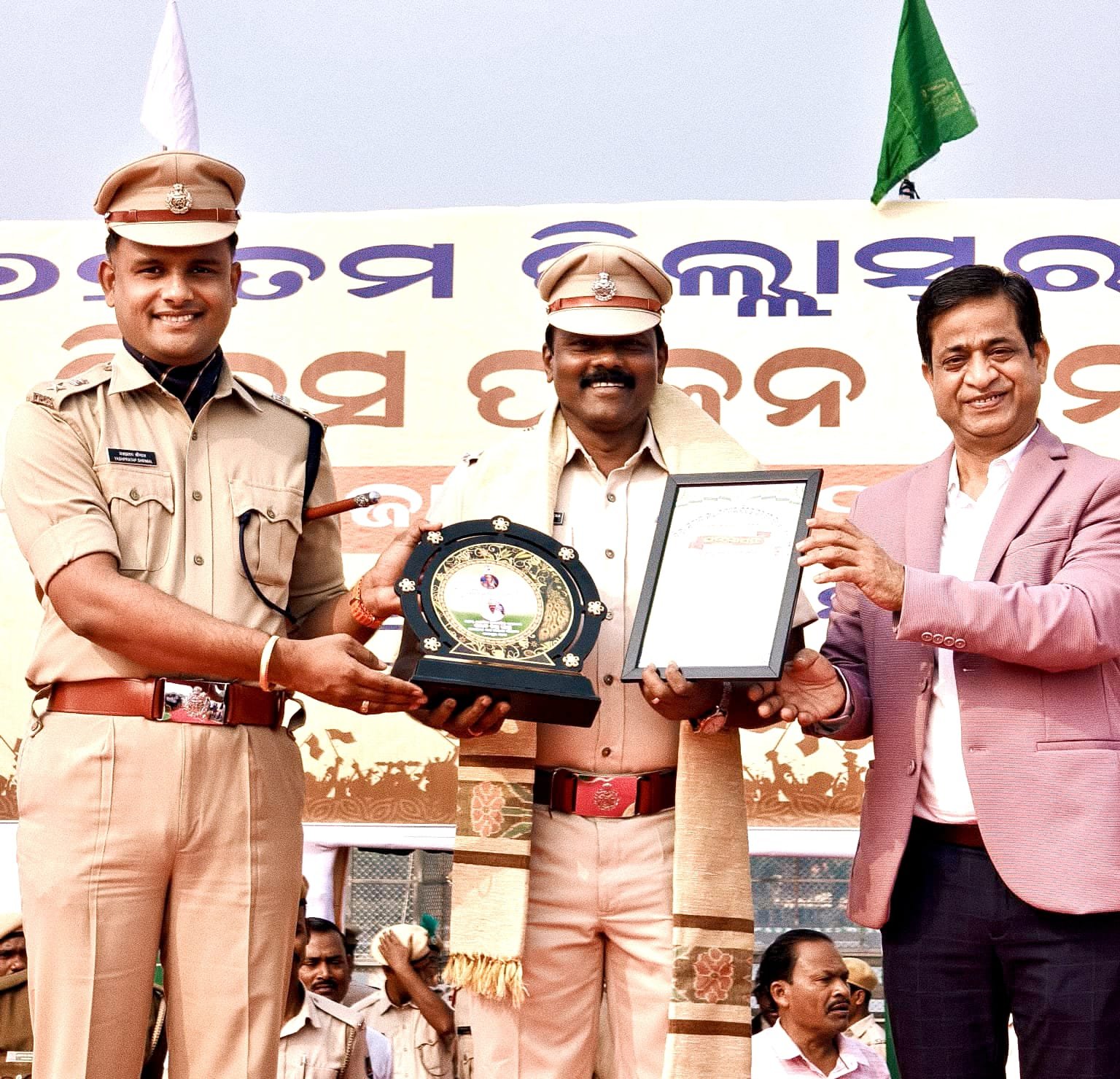 Jajpur,26/01(PPT): District Collector Amber Kumar Kar and SP Yashpratap Shrimal felicitated Senior Police Officer Sarat Chand Patra On the occasion of Jajpur district-wide Republic Day celebrations On Monady. Patra is a good writer along with a capable police officer. He has done good work in various districts.
