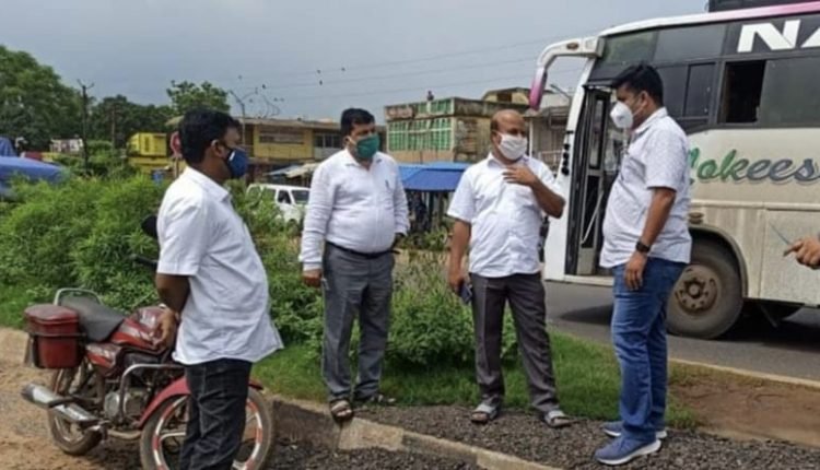 Dharmasala MLA Pranab Balabantarary, tehsildar Saroj Kumar Panda and block chairman Prabhat Kumar Balabantaray discussing about traffic control on National Highway 16 .