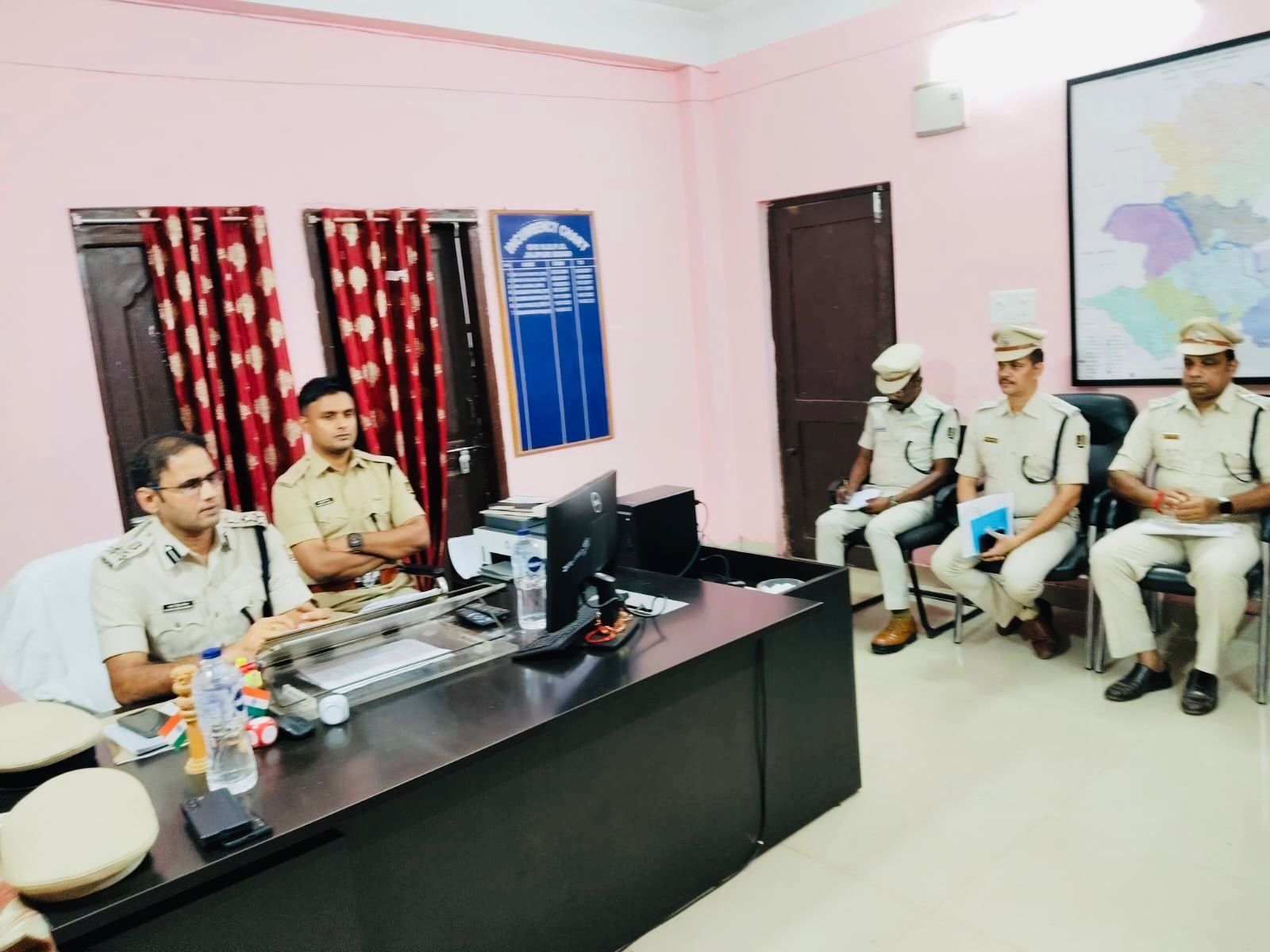 JAJPUR,26/11(PPT):The Cental Range DIG Charan Singh Meena visited Jajpur police station to review law and order situation in the district on Monday. It is pertinent to mention that DIG Meena’s visit comes on the heels of two significant incidents in Jajpur district: the attack on Dharmasala MLA Himanshu Sekhar Sahoo and the Biraja Haat incidents. As per reports, the DIG held a discussion with senior police officials including Jajpur Superintendent of Police (SP) Yash Pratap Shrimal and collector P Anvesha Reddy regarding the prevailing law and order situation in the district during his visit and appealed for peace. DIG Meena said, “I had come to review the law and order situation in Jajpur district. Around 40 platoons of police forces have been deployed at strategic locations in the district to ward off any sort of violence. Anyone attempting to disrupt the law will face action. Jajpur police are fully alert to prevent further disturbances. At least 19 persons have been arrested in connection with different cases.” Jajpur Situation Was Undrer Control Said DIG Meena Notably, Jajpur police conducted a flag march in the district headquarters town while the Jajpur district administration imposed prohibitory orders in Jajpur town on Sunday.