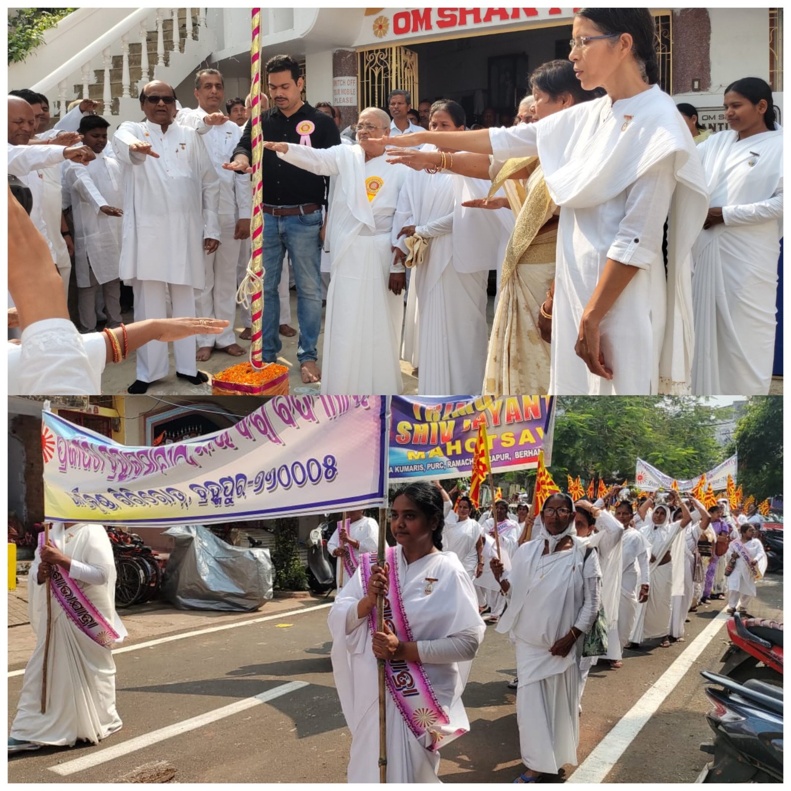 Brahmapur,09/03(ppt): A huge peace March of nearly 200 bks has been arranged after Flag hoisting on the auspicious occasion of Trimurti Shiva Jayanti Celebration. which is inaugurated by Dr. Priya Jeet Jena, Asst. Prof of Chest and TB, MKCG Medical College. This peace March has covered in the town. A two days Shiv Darshan Chaitanya jhanki as well as Dwadash Jyotirlinga darshan has been arranged in Prabhu Upahar Retreat Centre Brahmapur.